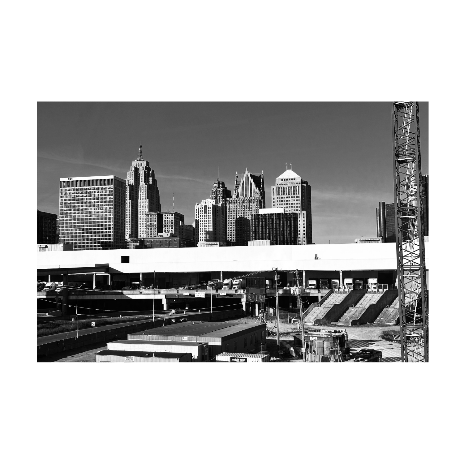 A black-and-white study of Detroit’s downtown skyline, framed against an active construction site. The clean geometry of the buildings meets the raw texture of the industrial foreground, capturing a city that’s always rebuilding, reshaping, and moving forward.