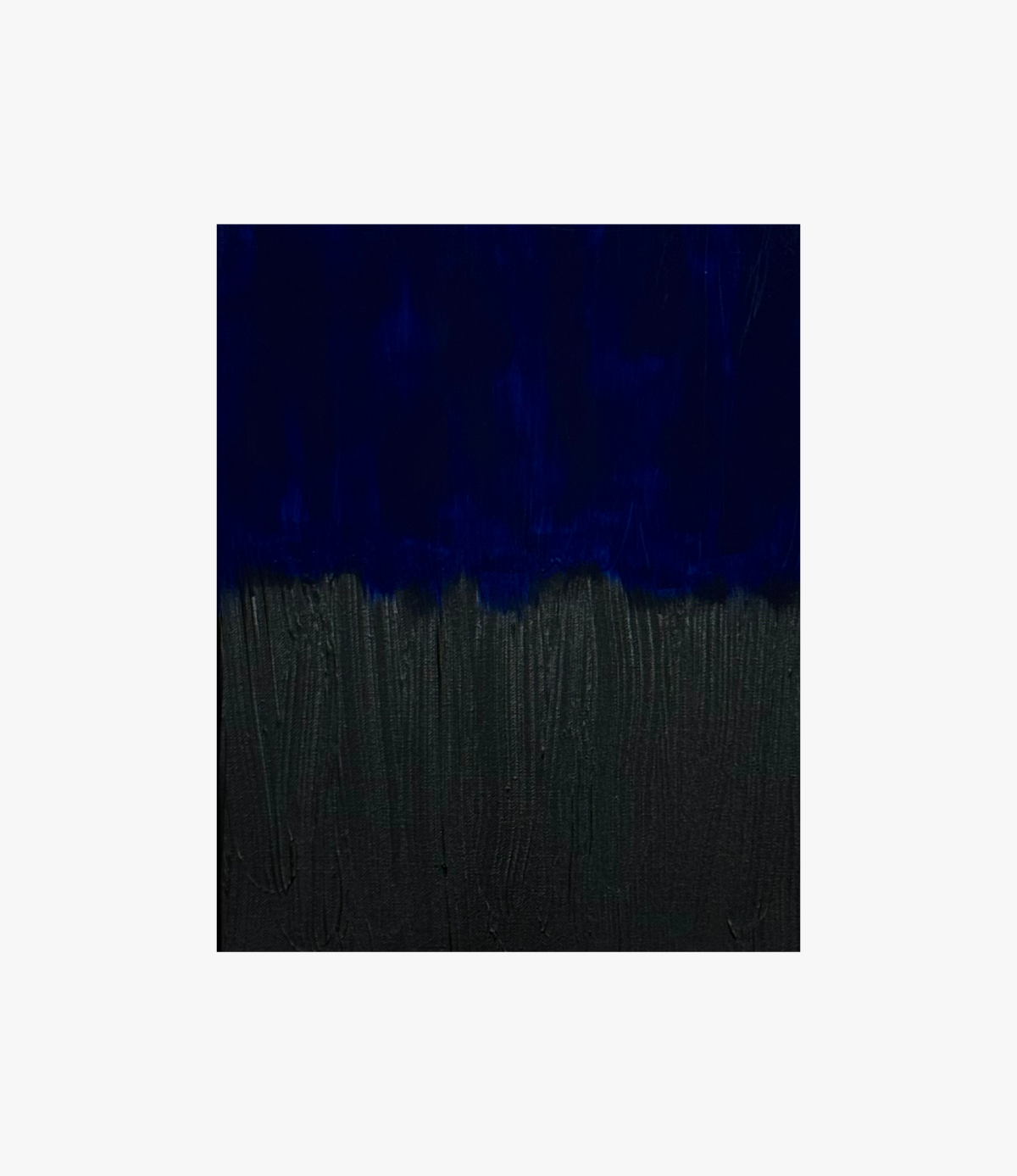 Deep midnight blues fading into textured black evoke the quiet, mysterious depth of the sea. A minimal, atmospheric piece that reflects the artist’s sense of home—both vast and intimate.